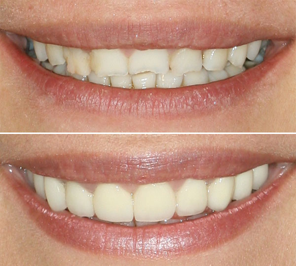Composite restorations can be a quick, economical, and aesthetic solution to old, worn, chipped and tired looking restorations. Symmetry is an attractive feature to the human eye—check out how the new hand sculpted composite restorations add symmetry and vitality, resulting in a smile that looks natural and vibrant.